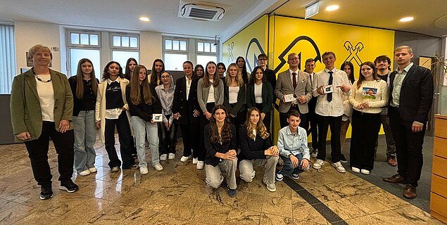 Die Schülerinnen und Schüler der 1AK erhielten von den beiden Kundenberatern Fabian Holzer und Sebastian Göbl in der Bankstelle Ybbs der Raiba Region Amstetten in Begleitung von Frau Prof. Prichenfried einen interessanten Einblick in die Aufgaben und Tätigkeitsbereiche der Bank. Zum Abschluss konnten sie bei einem spannenden Kahoot-Quiz auch noch ihr Wissen zeigen.