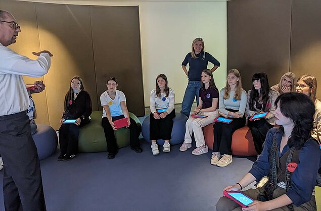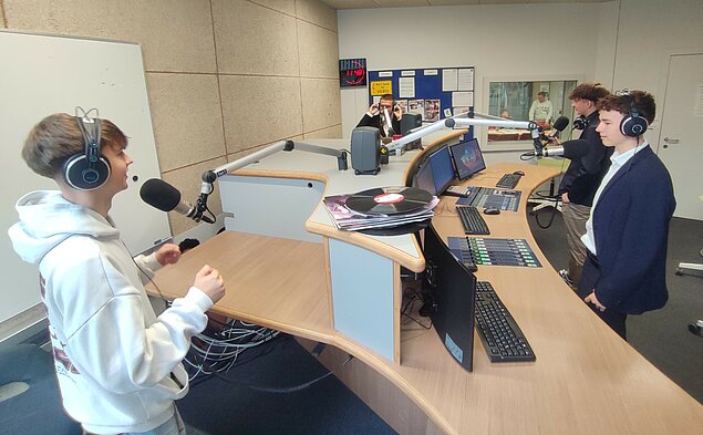 Im Anschluss nahm die 4AK an einem Workshop zum Thema „Pressekonferenz der Tiere – Framing the Future“ teil. Die 4BK tauchte beim Workshop im Radiostudio des Campus & City Radio 94.4 in die Welt des Journalismus ein und produzierte ihre eigene Livesendung mit ihren Lieblingssongs. Dabei sammelten sie wertvolle Erfahrungen in Moderation und Radioproduktion sowie im Umgang mit Medienkompetenz und Urheberrecht.