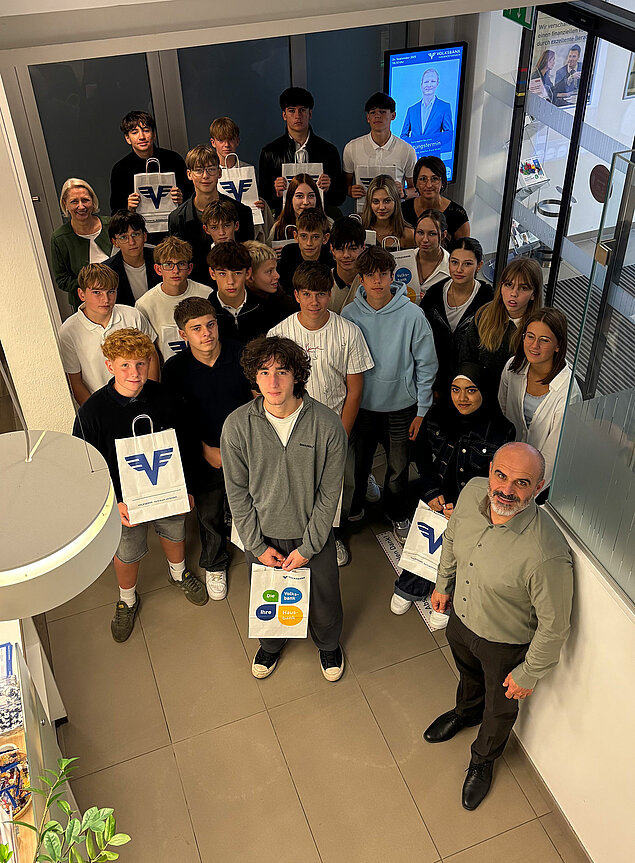 Die 1BK besuchte bereits am 24. September 2025 gemeinsam mit Frau Prof. Gruber die Filiale Ybbs der Volksbank Niederösterreich AG. Regionalleiter Prok. Christian Reichhard und sein Team gaben einen Überblick über die Aufgaben einer Bank und die Schülerinnen und Schüler erhielten Infos, was hinter dem Bankschalter passiert. Sie durften auch einen Blick hinter die dicken Stahltüren des Tresors werfen. Außerdem konnten sie im Rahmen eines Schätzspieles das Gewicht von Münzrollen erraten und Preise gewinnen.