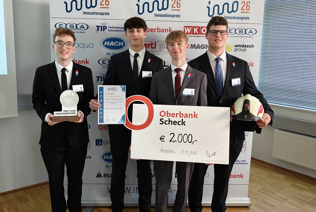 Ein besonderer Erfolg gelang dem Projekt „FeuerNet – Einsatzleitung neu gedacht“ der 5. Klasse Medientechnik der IT-HTL. Das Team gewann den erstmals vergebenen Publikumspreis, der mit 2.000 Euro dotiert ist.