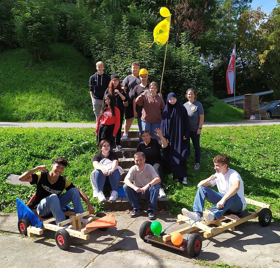 Die Leitung der beiden Tage übernahm Hr. Gerald Kraushofer und seine Trainer von der erlebnisfabrik.at. Auf verschiedenen Stationen konnten sich die Schülerinnen und Schüler besser kennenlernen, die Freundschaften vertiefen und ihre Klassengemeinschaft stärken. Besondere Schwerpunkte des Tages waren die Kommunikation im Team, das Erlernen von Führungskompetenz sowie das Ausleben von Kreativität in den Gruppen. Neben Vertrauensübungen sorgte vor allem der Bau von Fahrzeugen, die vor Ort ausprobiert wurden, für gute Stimmung.