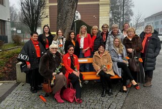 Nach der Veranstaltung wurde die Straßenseite zu IT HTL Ybbs gewechselt, wo eine orange Bank feierlich eröffnet wurde. »Zwischen 25.11. und 10.12. findet jedes Jahr die Bewusstseinskampagne Orange the World gegen Gewalt statt. Tatsächlich findet Gewalt aber 365 Tage im Jahr statt. Unsere orangen Bänke weisen ganzjährig darauf hin und stellen niederschwellig Notrufnummern zur Verfügung«, erklärt Ingrid Lebersorger, Präsidentin von SI Melk Colomania.