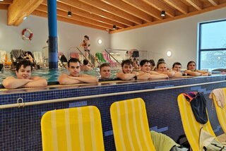 Die Alternativgruppe wählte Badegewand und verbrachte ein paar erholsame Stunden im Solebad Göstling, bevor alle Teilnehmerinnen und Teilnehmer den Tag beim Après-Ski am Hochkar ausklingen ließen und dabei die Klassengemeinschaft stärkten.