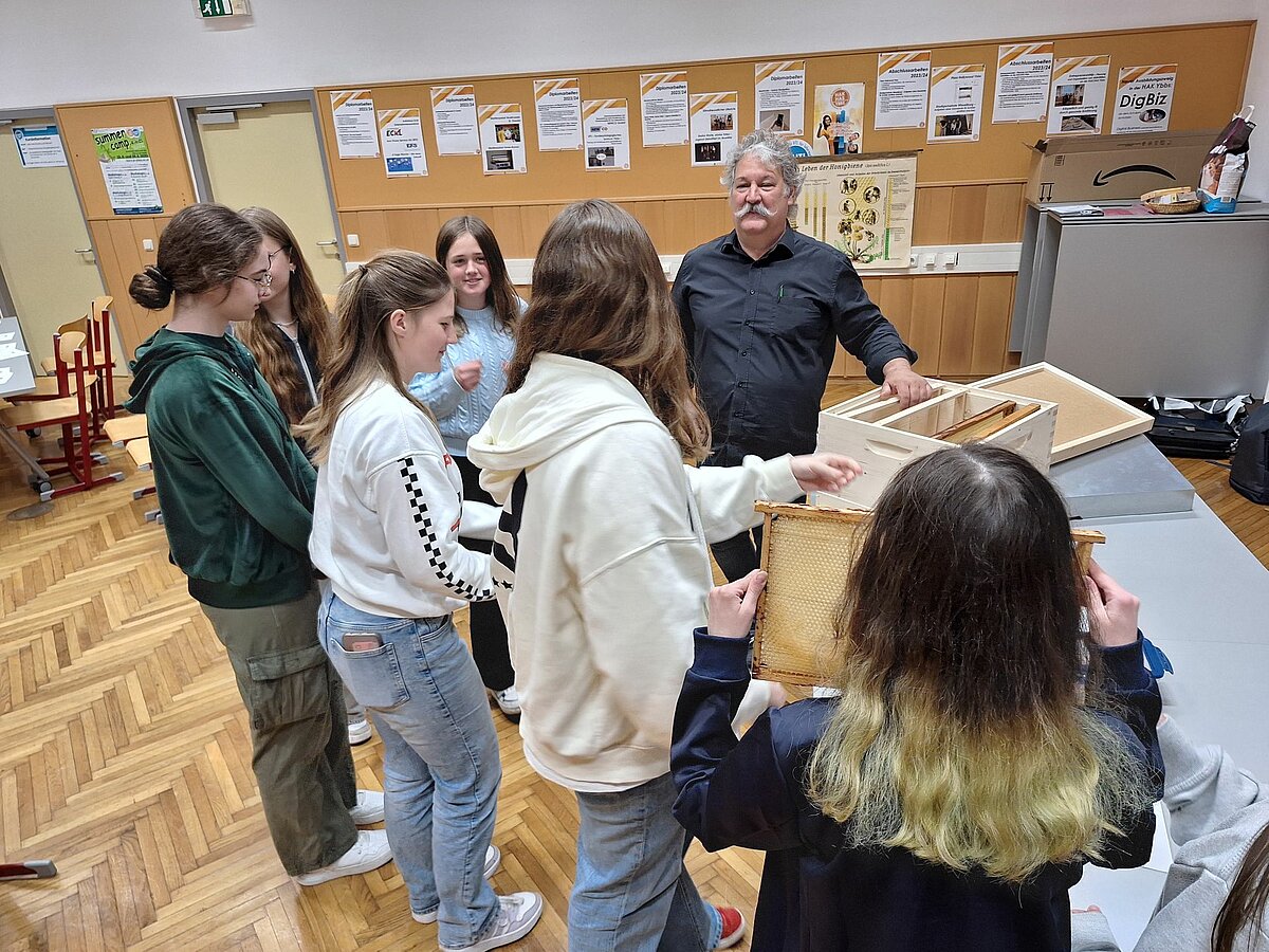 Der Tag begann um 9:00 Uhr mit einer Begrüßung und Einführung im PR-Saal der HAK Ybbs, bei der die Teilnehmenden in das Thema Bienen eingeführt wurden, einschließlich des Baus eines Bienenstocks und eines Bienenhotels. Rund 40 Gäste sowie zwei HAK-Klassen (insgesamt 70 Schülerinnen und Schüler) nahmen an der Veranstaltung teil.