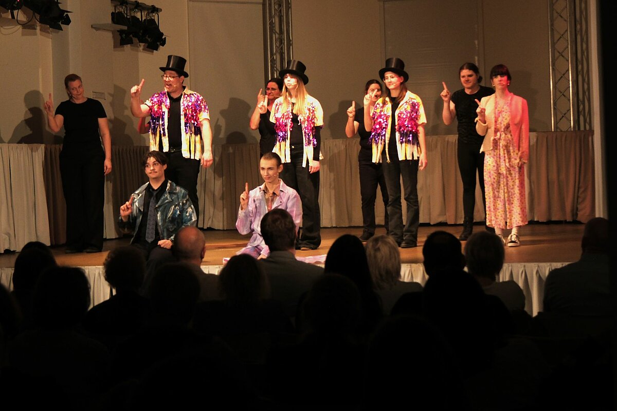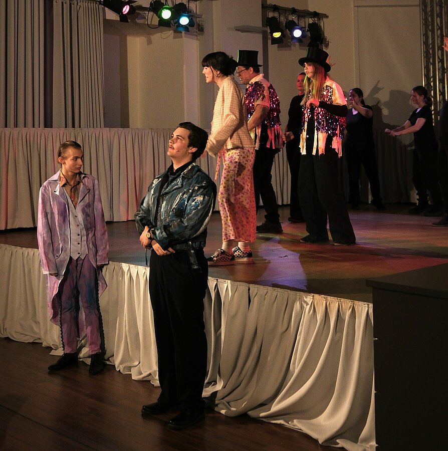 Auf der Bühne standen Lena Haubenberger (2AK), Theodor-Andrei Nicolescu (3AHIT), Jana Riedl (2AS), Annemarie Babinger (1BK), Charlotte Kratzer (1BK), Noah Greimel (3BHIT) sowie Absolvent Thomas Kolar. Besonders erfreulich war, dass Schauspielerinnen und Schauspieler aus allen drei Schultypen (HTL, HAK und HAS) mitwirkten. Ebenfalls auf der Bühne waren Lehrer Philipp Danner und die Lehrerinnen Sandra Handlgruber, Angelika Rohrmüller und Katharina Schroll.