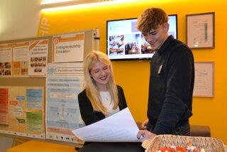 Die Entrepreneurship Lounge ermöglichte zusätzlich einen Einblick in den - in der HAK klassisch wählbaren - Ausbildungsschwerpunkt „Entrepreneurship und Management” und visualisierte bisherige Erfolge bei Businessplan-Wettbewerben genauso wie bereits mit Start-up-Unternehmer:innen und anderen Institutionen (beispielsweise mit der Wirtschaftskammer bzw. Fachhochschulen) umgesetzte Workshops.