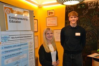 Am 14. und 15. November 2025 präsentierten Schülerinnen und Schüler aus unterschiedlichen Jahrgängen den interessierten Besuchern an den Infotagen der HAK/HAS bereits durchgeführte Aktivitäten und Informationen über das Unterrichtsprinzip Entrepreneurship Education und zum Debattierclub.