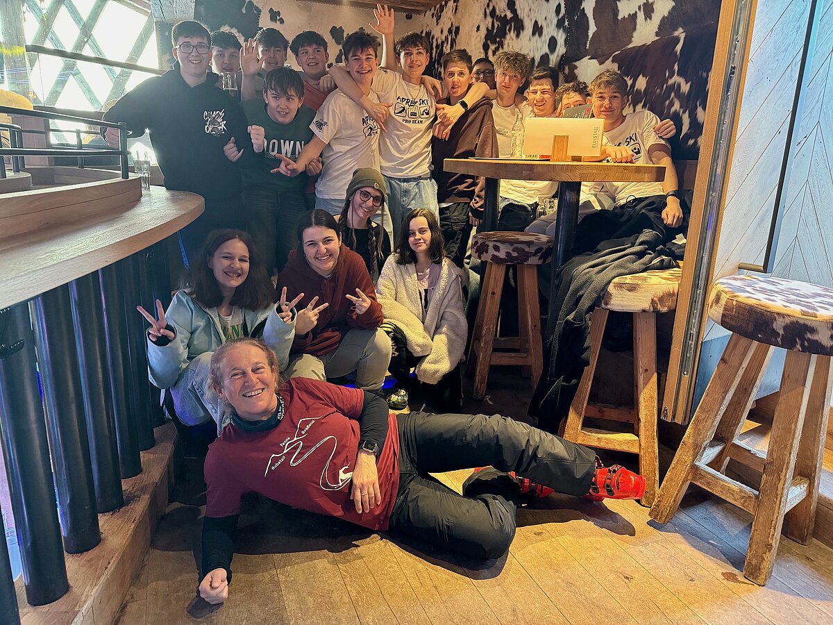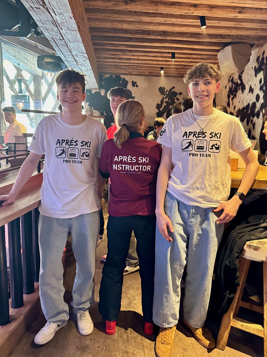 Der alpine Abschluss einer tollen Wintersportwoche mit Kaiserwetter, toller Stimmung, topmotivierten Schülern und Gott sei Dank kaum Ausfällen, wurde am letzten Abend mit einer kleinen Einführung ins Aprés Ski im Kuhstall gefeiert.