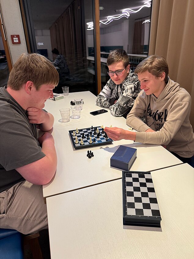 Wer am Abend weiter schwitzen wollte, hatte die Möglichkeit, sich im Fußball mit der Berliner Schule zu batteln – laut Schülerbefragung, hatten die Deutschen natürlich keine Chance gegen unser Team. Wer sich den Lehrern im Sport stellen wollte, konnte in einer total neuen Sportkombination antreten: Im Pickel-Padel, deren Ursprung – durch Platznot – jetzt bestimmt in Wagrain liegt. Ebenso wurden auch die Trampolinsprunghalle und Sauna fleißig genutzt. Jene, die es am Abend betreut & chillig haben wollten, konnten sich bei Schach mit Schachner oder Bauernschnapsen mit den Bauers austoben.