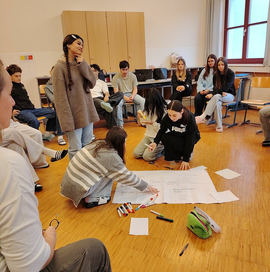 Ein Experiment anhand einer fiktiven WhatsApp-Gruppe zeigte anschaulich, wie schnell sich Fotos verbreiten und dass das Internet „nichts vergisst“. Zum Abschluss erarbeiteten die Schülerinnen und Schüler eigene Regeln für den Umgang mit Apps.