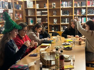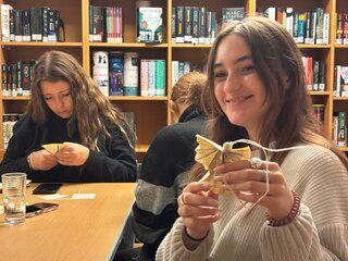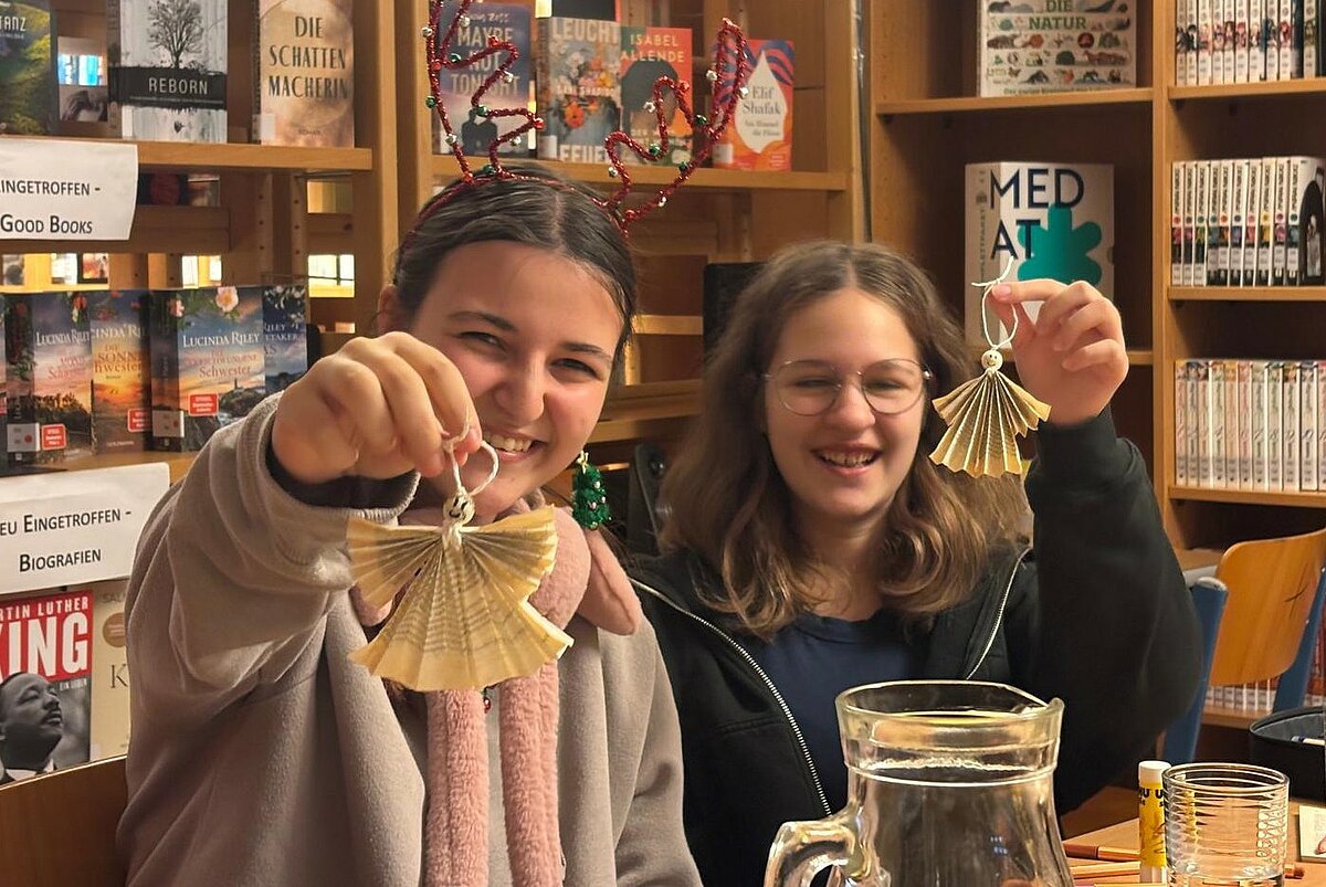 Bei Weihnachtsliedern, Keksen und Saft wurde Dekoration in Form von kleinen Engeln und anderen Figuren aus alten Buchseiten gebastelt. Inmitten der hektischen Schularbeiten- und Testzeit konnte so ein Hauch von Weihnachtsstimmung aufflammen.