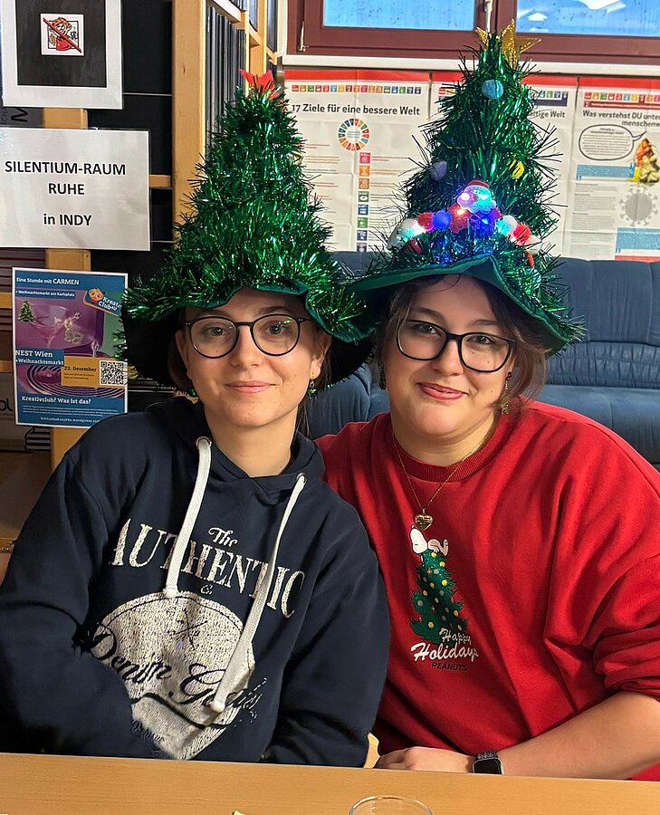 Helga Geyrecker und Sandra Handlgruber wünschen allen Kreativclubbern und der gesamten Schulgemeinschaft ein wunderschönes Weihnachtsfest, erholsame Ferien und alles Gute für 2026!